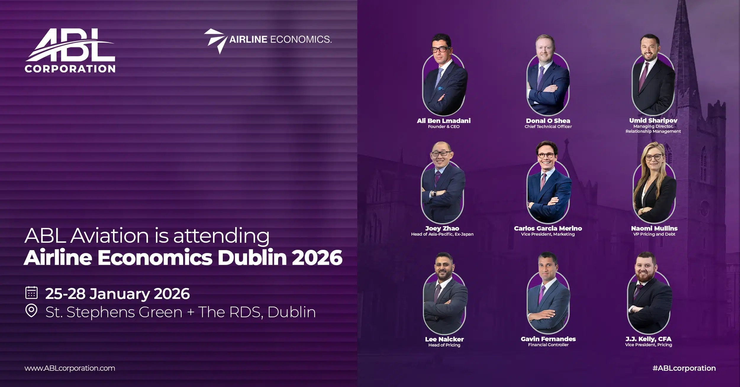 ABL Corporation is pleased to announce that its aviation subsidiary, ABL Aviation, will attend Airline Economics Dublin 2026, one of the leading aviation finance conferences in Europe, taking place from 25–28 January 2026 at St. Stephens Green and The RDS, Dublin.